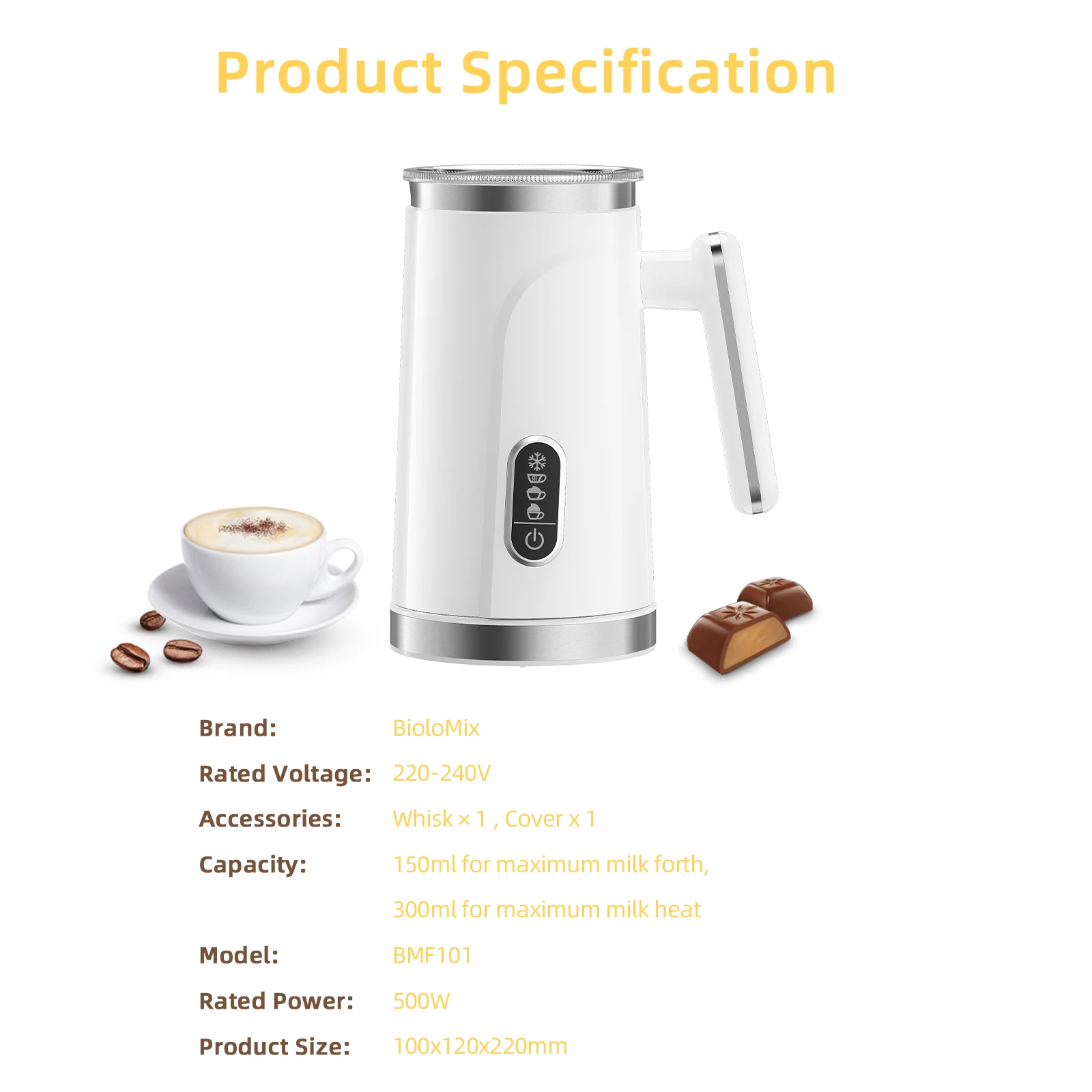 • 4 in 1 Function: BioloMix milk frother can create warm dense foam, warm airy foam, cold foam and warm milk, you can enjoy heavenly coffees in no time at home with this frother and steamer
