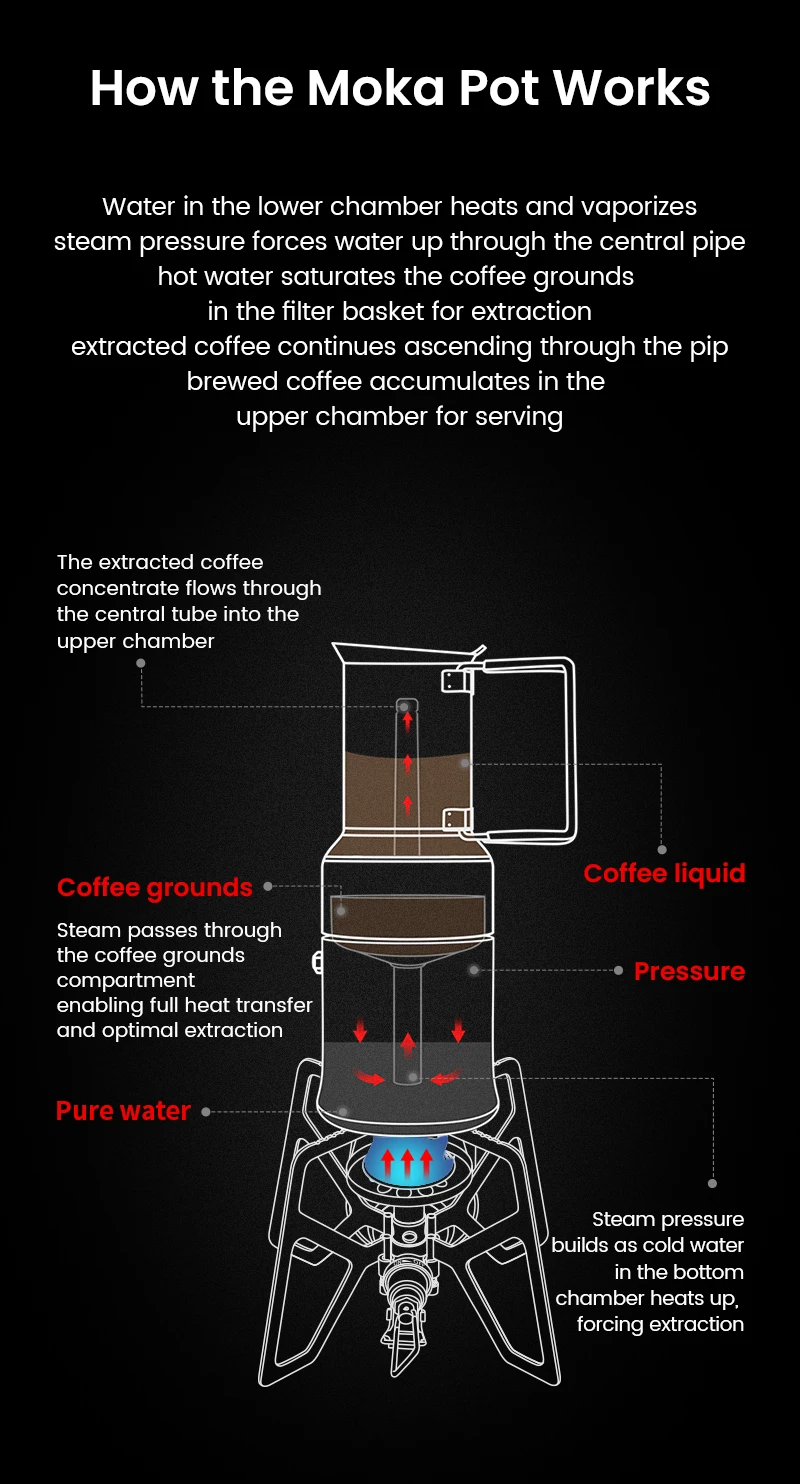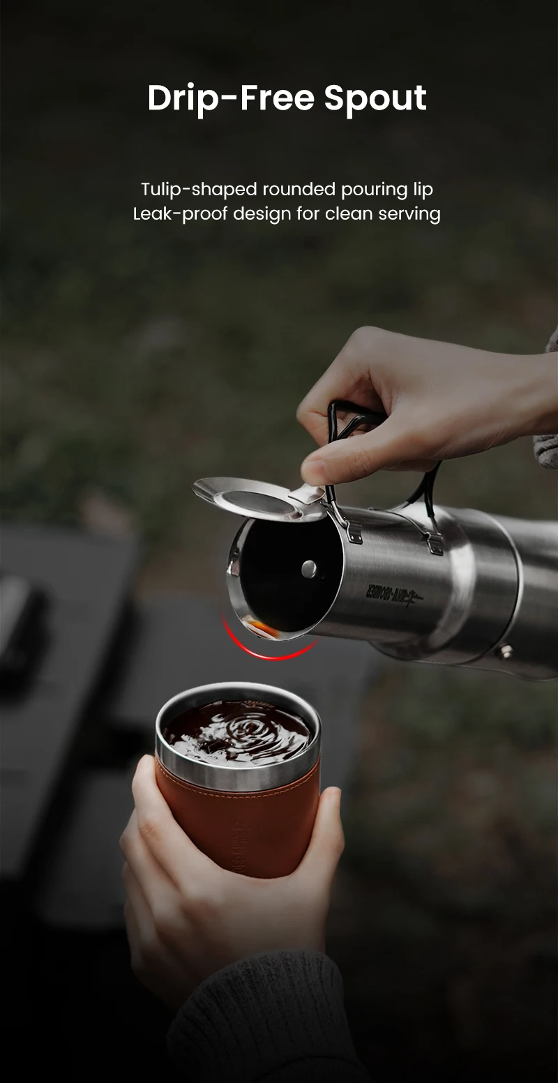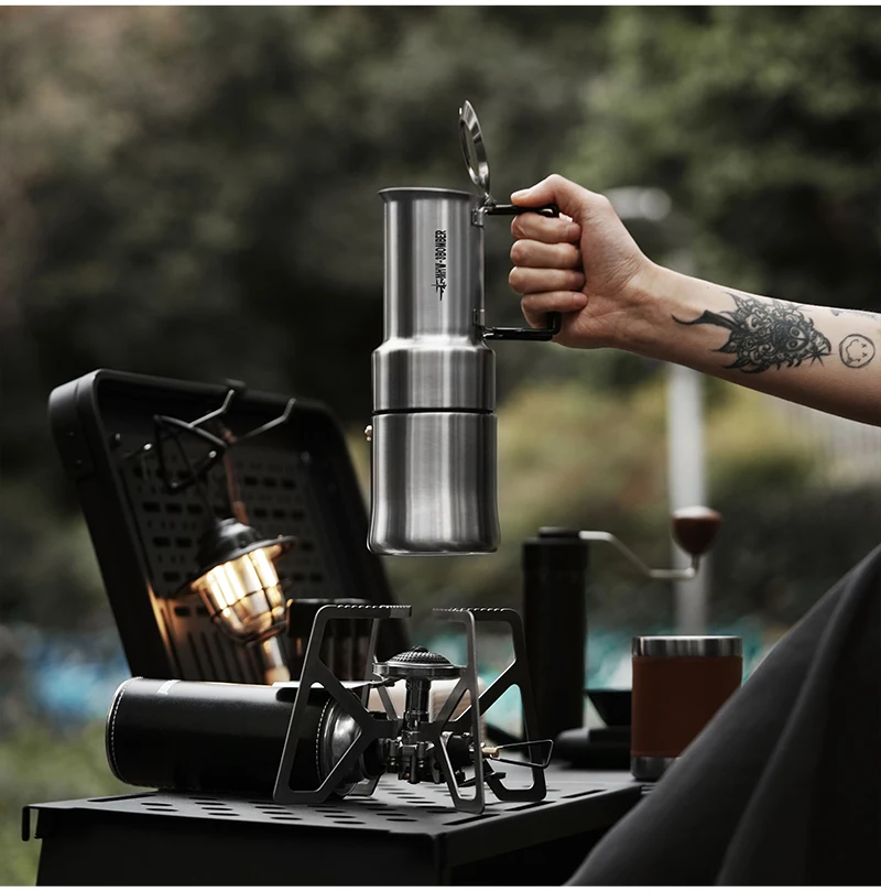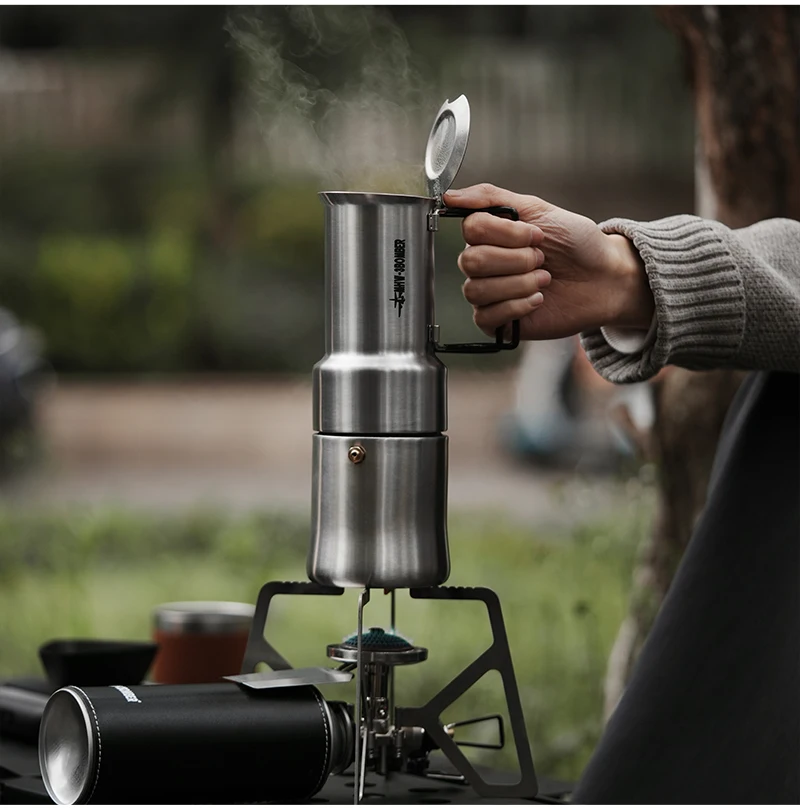 MHW-3BOMBER Moka Pot 350ml Stainless Steel Coffee Maker Integrated Pot-cup Foldable Handle Espresso Pot for Camping Coffee Tool