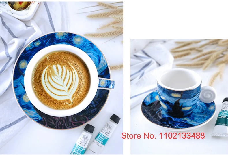 Van Gogh Coffee Cup Set Luxury Ceramics Coffee Mug And Plate Set Oil Painting ESPRESSO Demitasse Glass Cappuccino Tasting Teacup